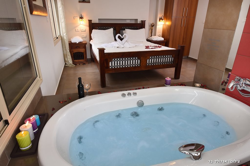 סוויטה רומנטית במיוחד המעוצבת כחלל פתוח הכוללת מיטה זוגית, ג'קוזי, מטבחון מאובזר במקרר, פינת קפה, כיריים, מיקרוגל וכלי מטבח, חדר רחצה עם מגבות ותחליבי רחצה, טלוויזיה בחיבור לערוצים. לכל סוויטה מרפסת פרטית עם פינת ישיבה ומנגל.
