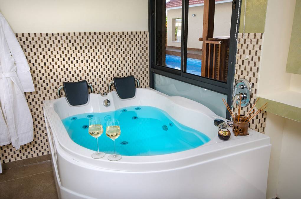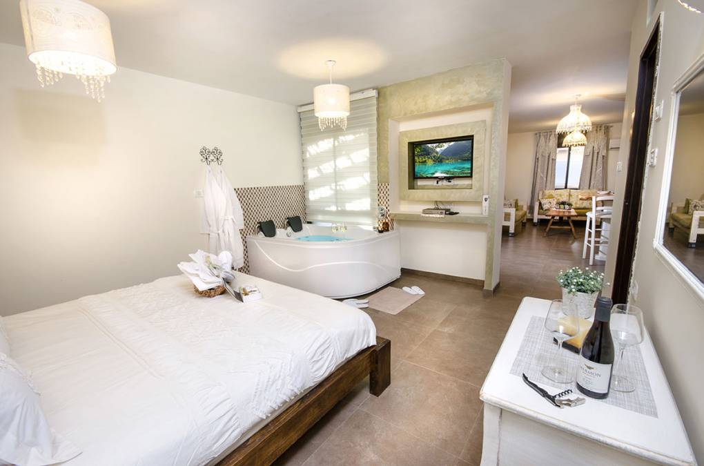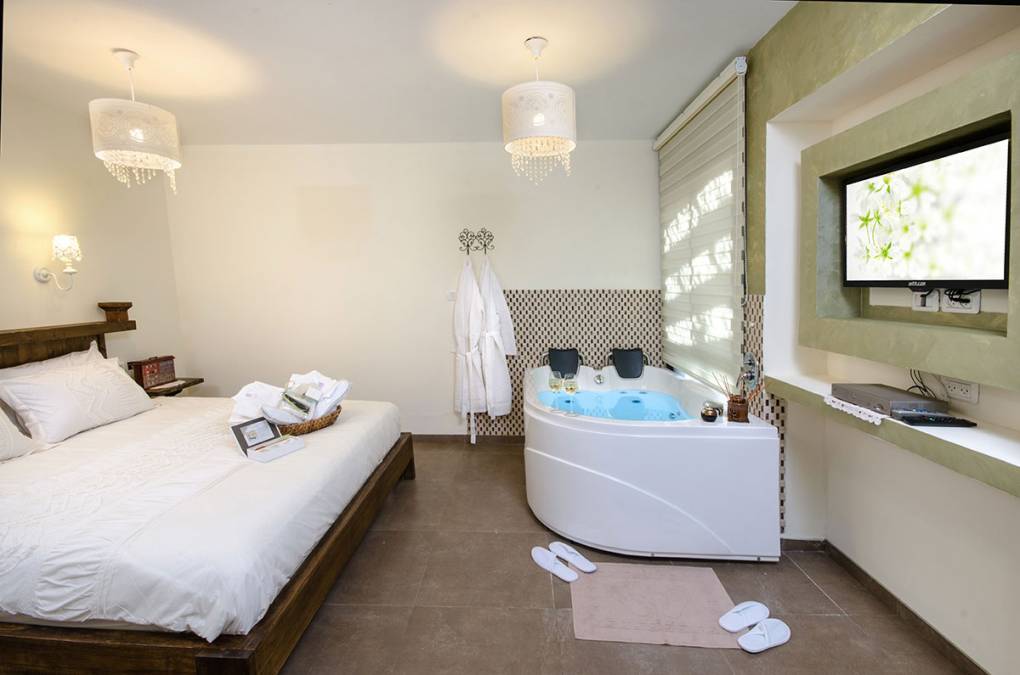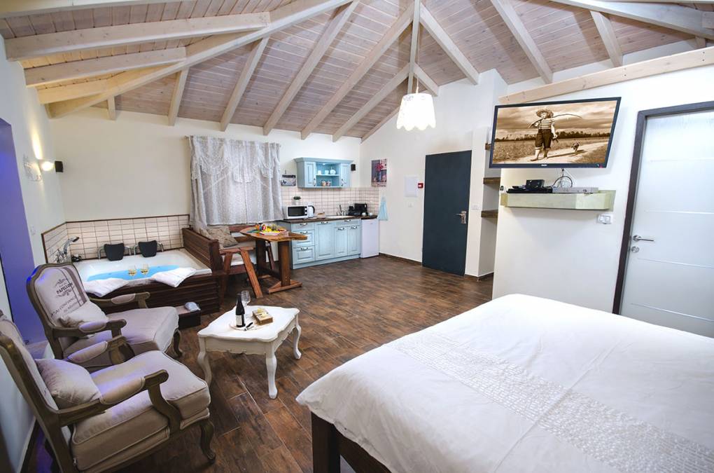 היחידה כוללת: מרפסת פרטית, חדר שינה עם מיטה זוגית, ספא נפתחת, ג'קוזי פרטי, מטבחון מאובזר במקרר, פינת קפה, כיריים, מיקרוגל וכלי מטבח, חדר רחצה נעים עם מגבות ותחליבים וטלוויזיה עם חיבור לכבלים.
