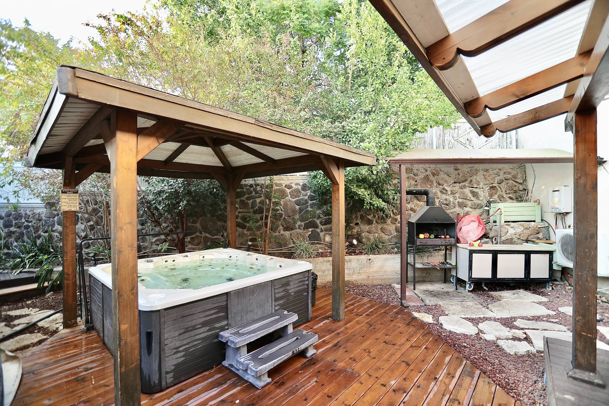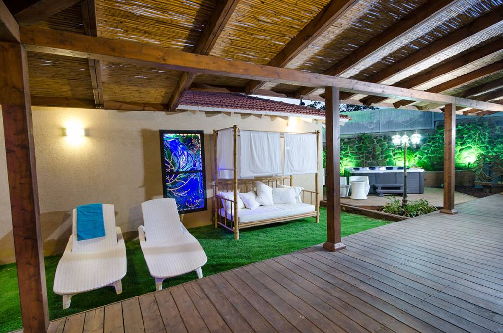 במתחם החוץ אתם מוזמנים ליהנות מבריכה מגודרת המחוממת בעונה, ג'קוזי ספא חיצוני מפנק ועמדת מנגל מסודרת לאוהבי הנפנוף.
